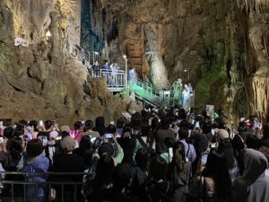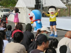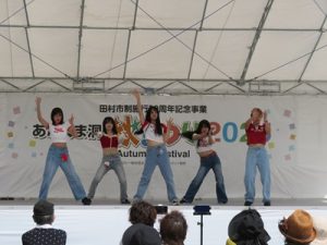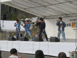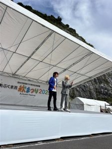 今年から1日のみの開催となった「あぶくま洞秋まつり」。あぶくま洞のファンを醸成するイベントとして田村市のメインイベントとして定着している。ステージではドラえもんショーや、楠木康平氏の歌謡ショー、三四郎のお笑いライブ、さらにマイクマイクアローン・YOWABOKU・MOZAIKのライブを実施した。さらに今年は初めての試みとしてあぶくま洞内でもマイクマイクアローン・YOWABOKU・MOZAIKのライブを行い幻想的なあぶくま洞内で大勢の観客を魅了した。